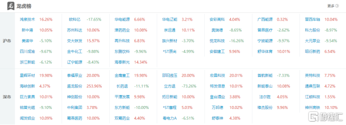 下面我们来看下今日龙虎榜情况: