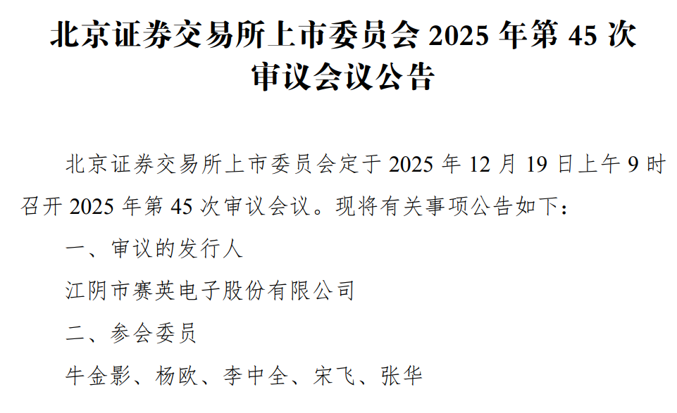中国产经观察消息:2025年12月19日,江阴市赛英电子股份有限公司(以下简称“赛英电子”)即将迎来北交所上市委审议会议的关键时刻。然而,深入剖析其招股说明书及北交所的多轮问询回复,不难发现赛英电子在客户依赖、毛利率下滑、内控合规、募投合理性等诸多方面存在显著问题,为其上市之路蒙上了一层厚重的阴影。