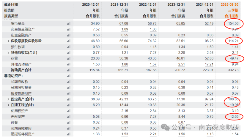 从存货来看,储备并没大量新增,但从公司的固定资产和在建工程来看,公司在进行资本开支扩张,体现在固定资产(主要是机器设备和房屋建筑物)从2020年末的38.39亿逐年攀升至2025年三季度末的108.83亿,增速超过了对应期间公司的收入增速。