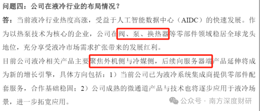 除此之外,基于现有技术积累,公司还布局了当下最火热的液冷、机器人业务。目前公司液冷相关产品主要聚焦外机侧与冷媒侧,后续会向服务器端产品延伸。