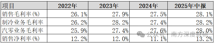 汽车热管理零部件业务在2022-2024年年均复合增长率达23%,远高于制冷业务的9.4%,是近年重要的增长引擎。2025年中报收入占比36%,毛利率25%-28%,与制冷业务形成“稳健+成长”的双轮驱动。