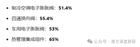二是汽车热管理零部件,覆盖新能源与传统燃油车领域,车用电子膨胀阀全球市占率超50%,在特斯拉、比亚迪供应链中市占率超65%,热管理集成组件市占率约66%,同样登顶全球第一。