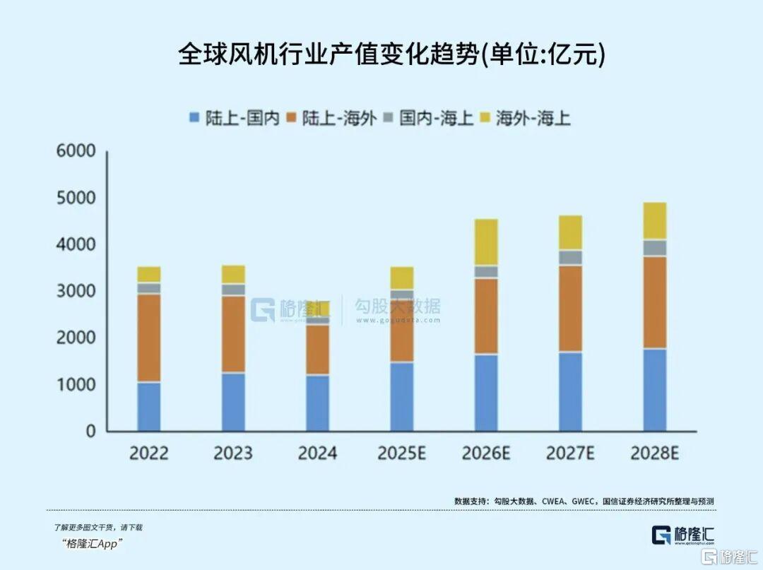 利润方面,国内陆上风机因为价格回升,盈利增长特别快,每年平均增速能到45%,2026年将是主要的增长年份;而海外陆上风机市场规模更大,到2028年利润会达到198亿元,会成为国内风机企业业绩增长的重要支撑。