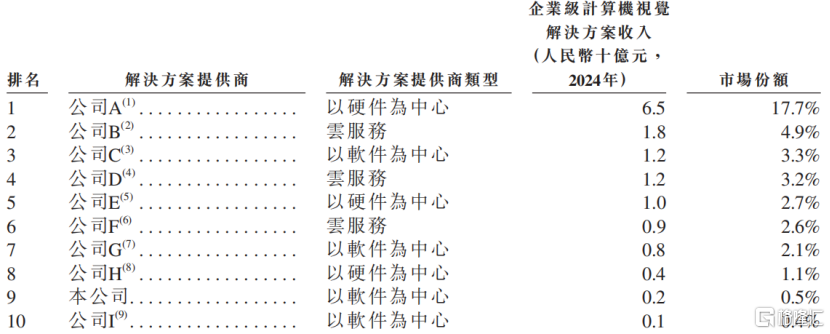 中国整体企业级计算机视觉解决方案市场的竞争格局,来源:招股书