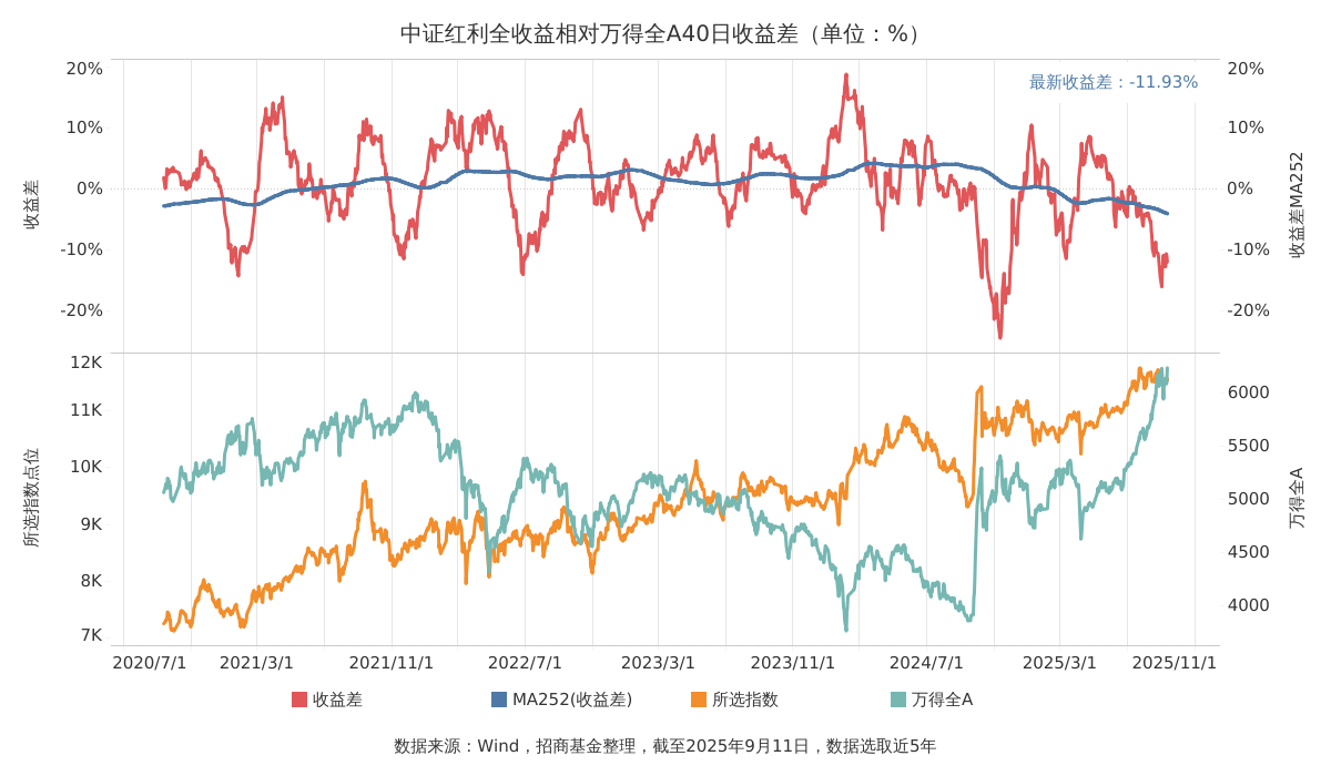 此外值得注意的是,同期中证红利全收益相对万得全A40日收益率差值再度扩大至-11.93%,显示红利资产短期布局价值升温。资金面上,中证红利ETF(515080)已经连续2日吸金超5800万元。