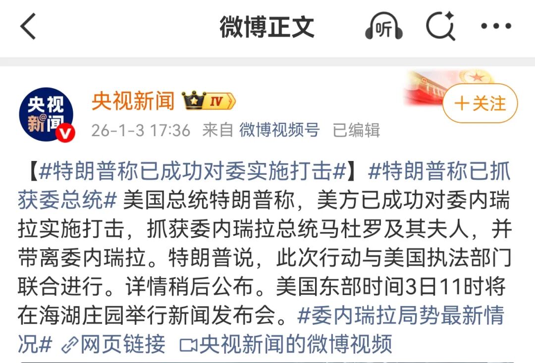 昨天17:36的新闻,马杜罗已经被抓。