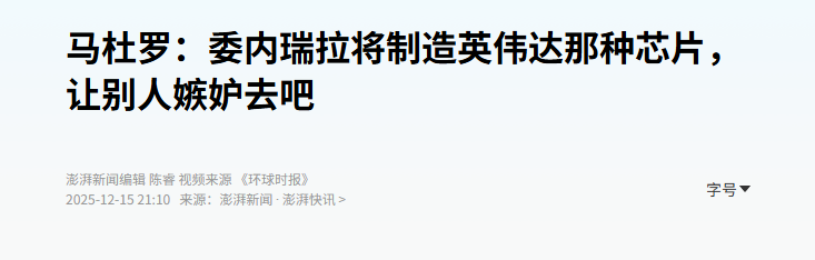 都内忧外患紧要关头了,前段时间马杜罗还说,要造芯片了,对标英伟达。