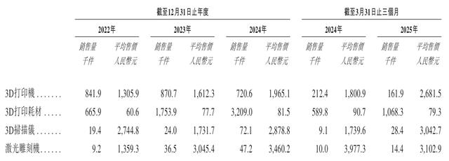 具体来看,创想三维3D打印机的销量由2023年的87.07万台减少至2024年的72.06万台,降幅约为17.2%。2025年第一季度,该公司的3D打印机实现销量16.19万台,亦较2024年同期的21.24万台减少23.8%。