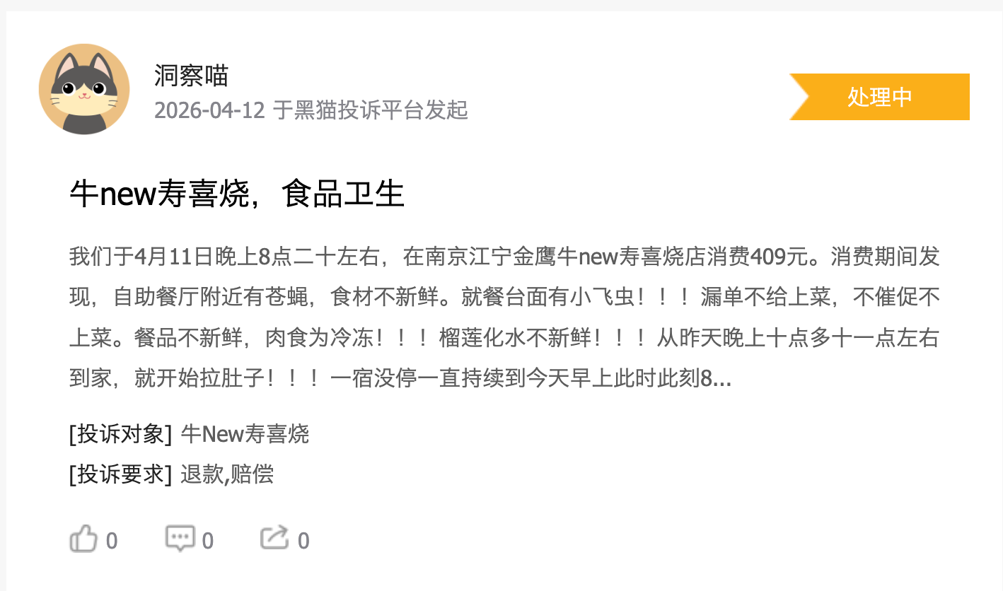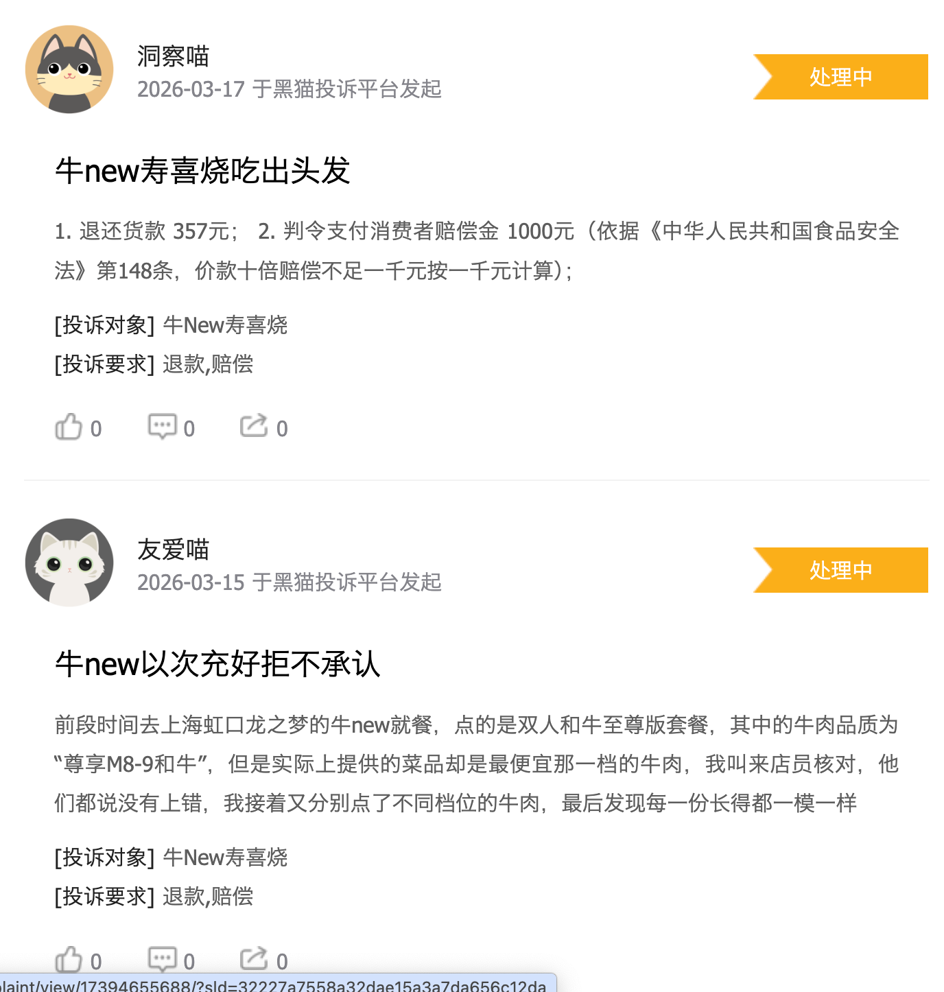 不过,加速扩张背后也存在一定隐患。在黑猫投诉平台上,相关投诉不在少数,大多集中在食品卫生等方面。