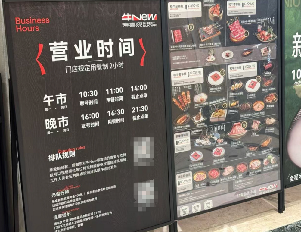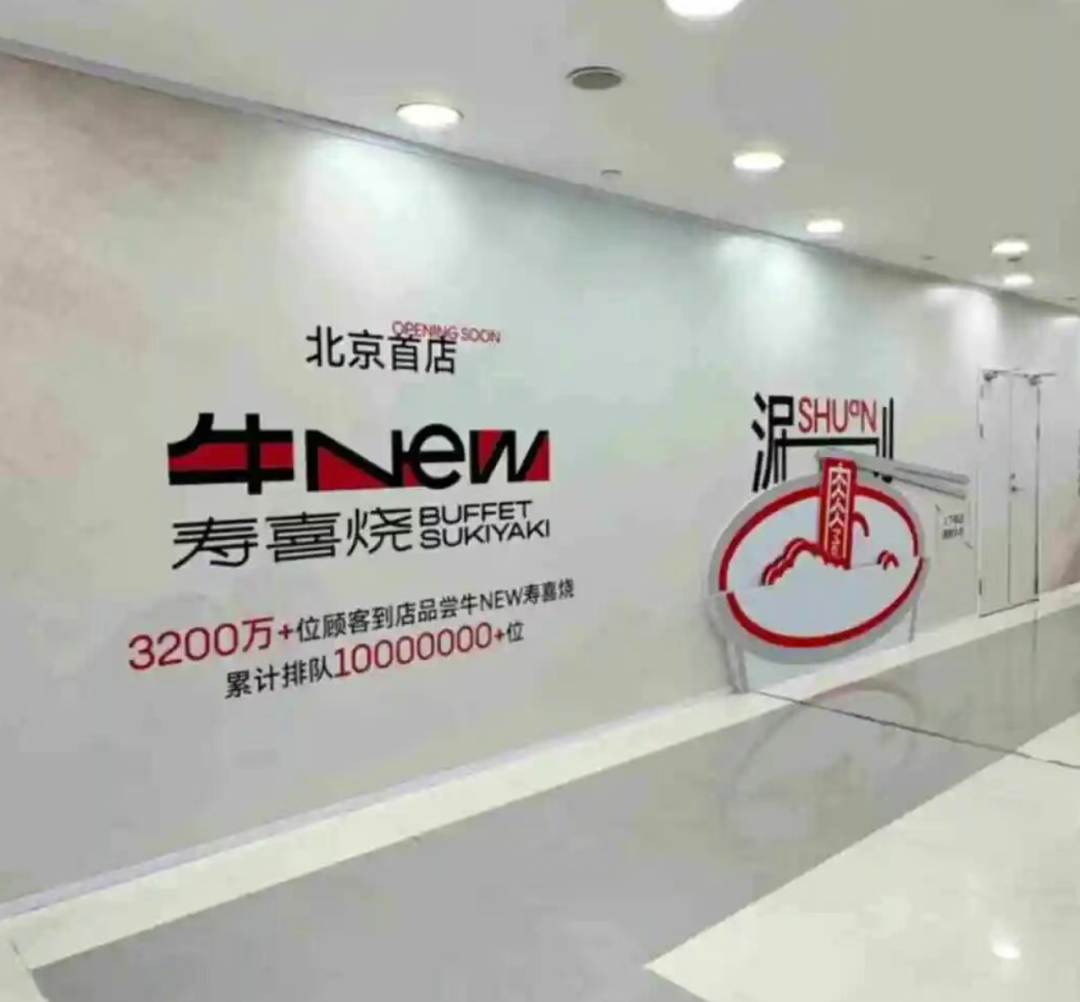 近期,北京王府井apm购物中心立起一块围挡,上面印着两行数字,3200万+位顾客到店品尝,累计排队10000000+位。围挡之内,是尚未开业的牛New寿喜烧门店。