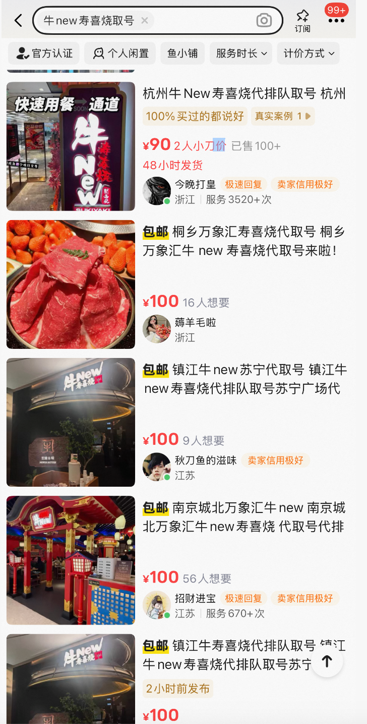 记者查询发现,在二手交易平台上,一个黄牛号甚至能炒到100元,虽然官方持续出手打击,但在排队热的背景下,此类行为屡禁不止。