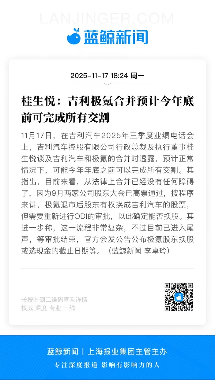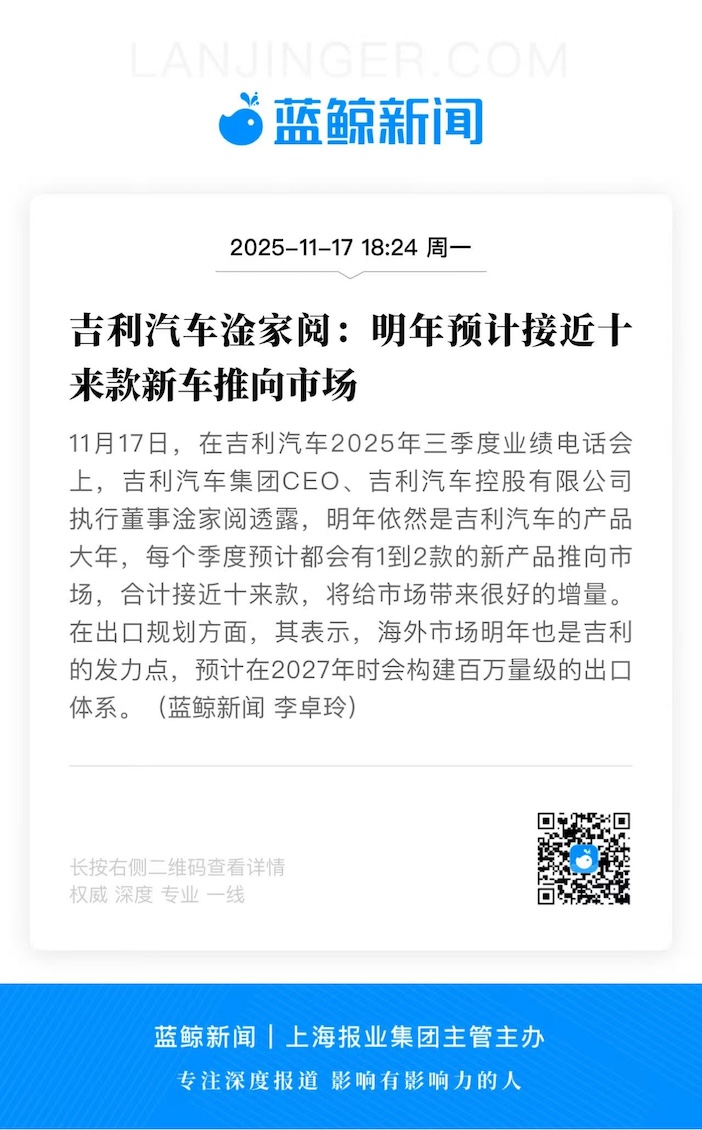 11月17日,吉利汽车、零跑汽车、小鹏汽车三家上市车企2025年三季报相继出炉。