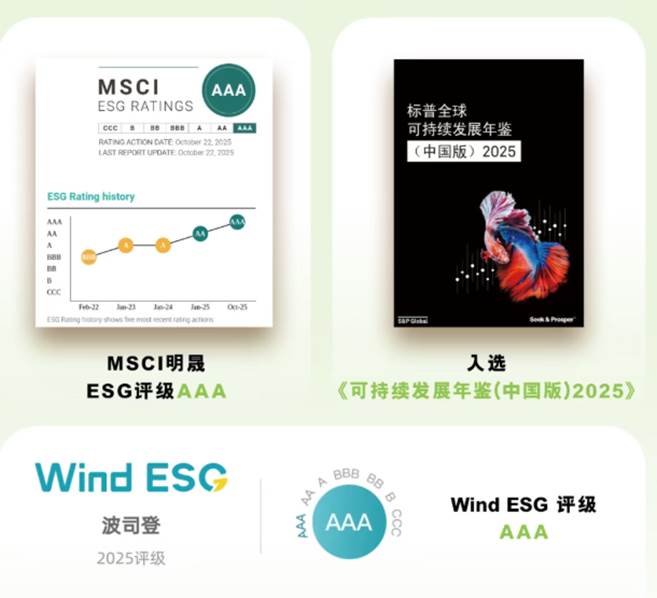 三是可持续时尚塑造责任形象。波司登积极响应国家“双碳”战略,发布了清晰的“1+3+X”ESG战略框架,设立了“2038年前实现运营环节净零排放”的碳目标。公司连续入选标普全球《可持续发展年鉴(中国版)》,并成为首家获评MSCI ESG AAA最高评级的亚洲纺织服装企业。