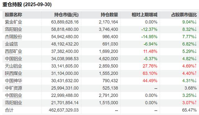 有色金属特别是贵金属与稀有金属,是A股今年同AI几乎并行的行情主线,因此,这只基金能登上股票型基金TOP20涨幅榜,绝非侥幸。三季报显示,这只基金前12重仓股全是资源股,其中,持仓权重前3名的紫金矿业(601899.SH)、洛阳钼业(603993.SH)、杰瑞股份(002353.SZ)都是今年以来的大牛股。