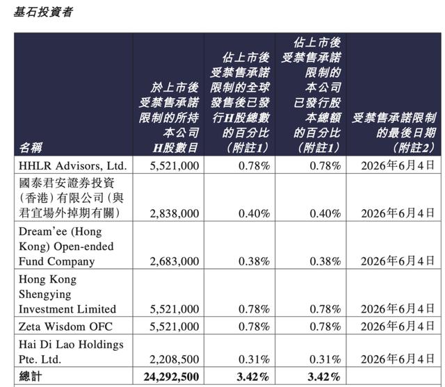 按照基石投资协议,遇见小面的基石投资者一共认购了2429.25万股,占全球发售总额的近1/4,花费1.71亿港元。