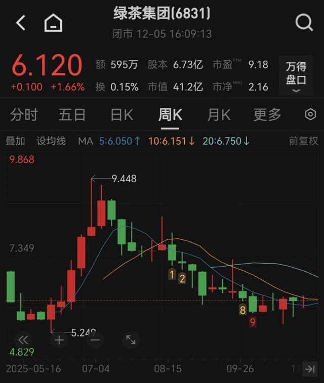 后来绿茶集团虽然有所上涨,但很快又跌下来了。12月5日,绿茶集团的收盘价6.12港元,仍然比发售价7.19港元低了15%。
