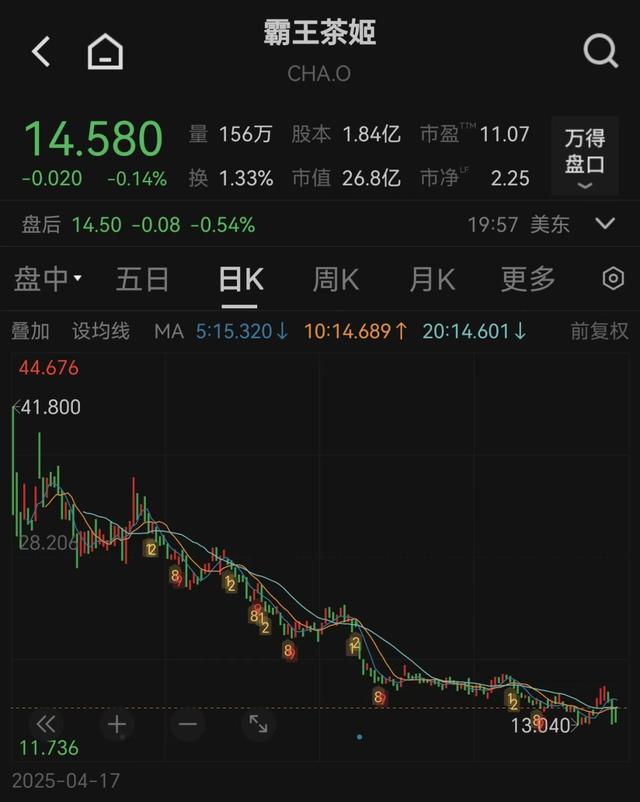 就连今年4月在美股上市的霸王茶姬,上市到现在也跌了近60%。