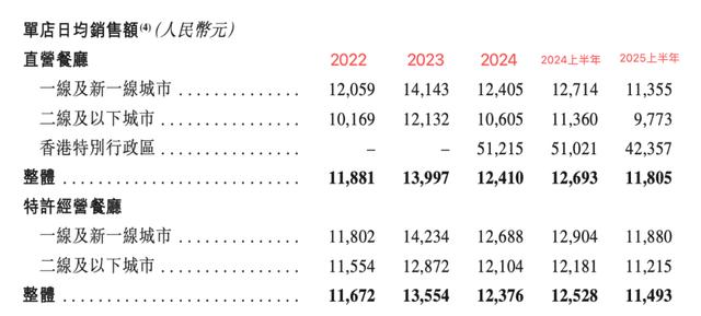 而且,单店销售额下降很明显。2025年上半年只有11493元,比2023年高峰期降了15%以上。