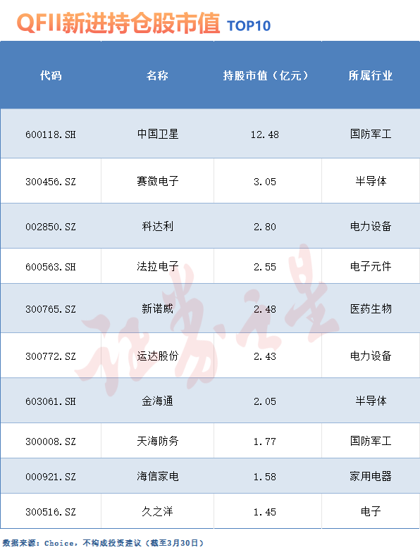此外,新进名单中还出现了博迈科、天海防务等海洋工程与军工配套企业,以及中水渔业、京粮控股等消费与农业领域的公司。这种多元化的布局,显示出QFII在聚焦科技成长主线的同时,也在适度分散配置,以把握不同行业的结构性机会。
