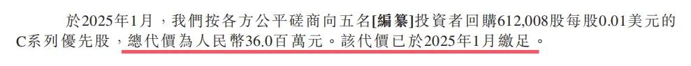 尽管面临资金吃紧,博车网2025年初还进行了一笔优先股回购。招股书显示,2025年1月,公司向五名投资者回购612008股每股0.01美元的C系列优先股,总代价为3600万元,该对价已于2025年1月缴足。