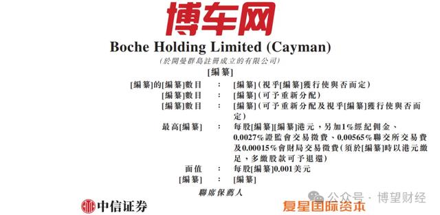 港交所2月21日披露,Boche Holding Limited(Cayman)博车网递表港交所主板,中信证券、复星国际资本为联席保荐人。