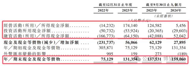 此种情况下,博车网资金情况也不乐观,经营活动所得现金净额2023年前三季度为1.25亿元,2024年前三季度骤降至545.6万元;同期公司融资活动动所得现金净额由净减少4208万元净变为增加至5205万元