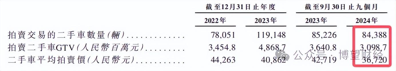 招股书显示,2024年前三季度,博车网的二手车拍卖数量、拍卖价格以及交易总额均出现了下滑。