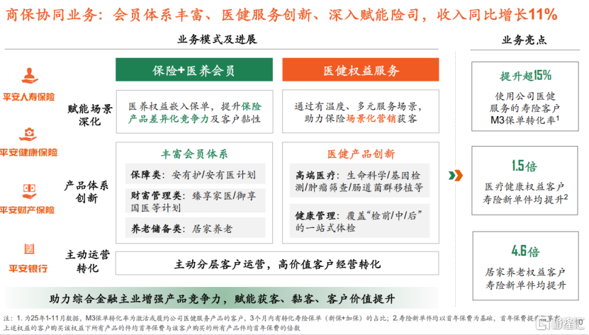 与此同时,商保协同业务(F端)收入32.96亿元,同比增长11%。增速看似平稳,背后却藏着更深的协同价值:医疗健康权益客户寿险新单件均提升1.5倍,居家养老权益客户寿险新单件均提升4.6倍。