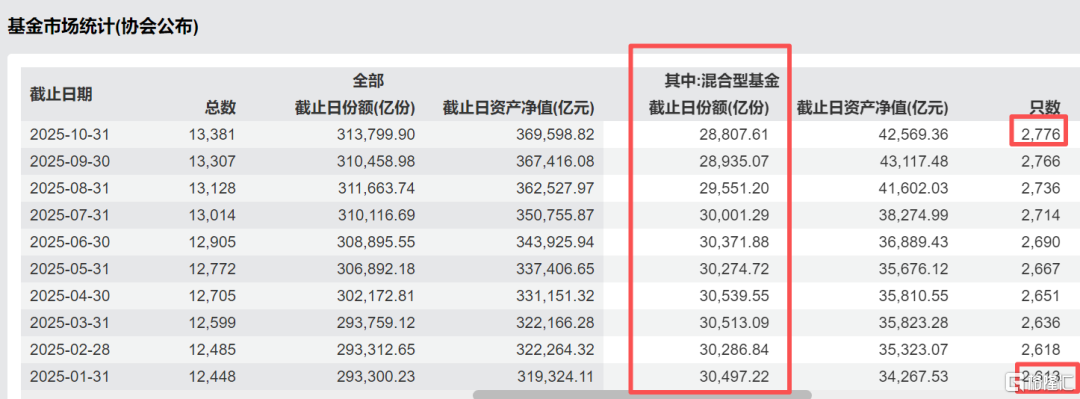 今年前10个月,混合基金在新发163只新产品的情况下,份额合计缩水1689.61亿份,涨得越好的月份,被赎回得越多。
