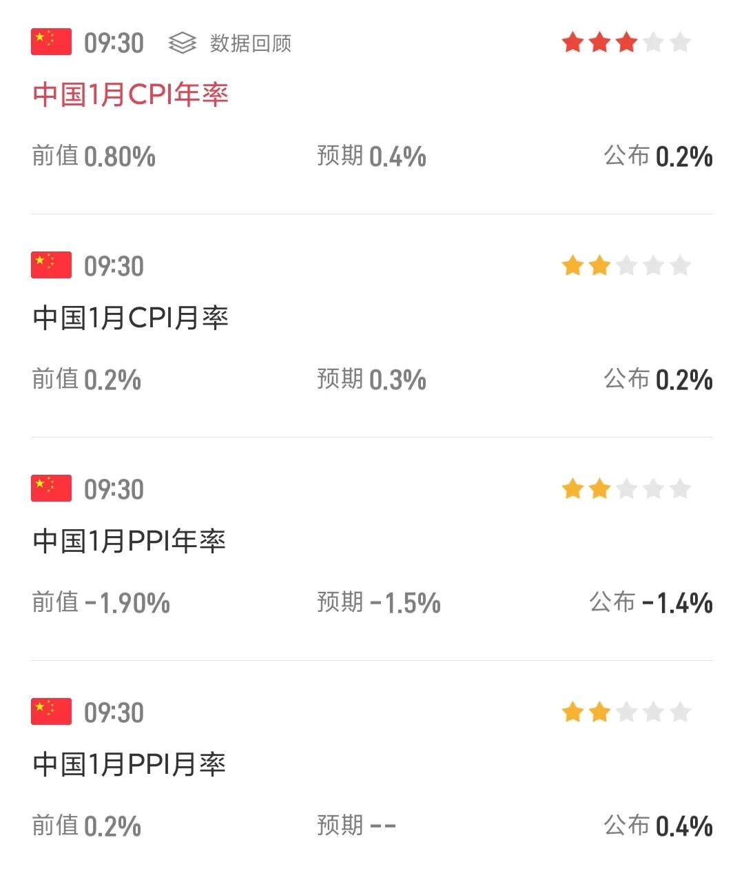 2026年1月中国CPI同比0.2%(前值0.8%,彭博一致预期0.4%),环比增速持平于12月的0.2%;PPI同比-1.4%(前值-1.9%),略高于彭博一致预期的-1.5%,环比较12月的0.2%上行至0.4%。华泰证券认为,1月CPI同比回落至0.2%,主要受春节错位暂时压制,但核心CPI环比0.3%创半年新高,显示内需温和修复。