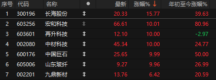 今天玻纤板块掀起涨停潮,国际复材、宏和科技、中材科技、中国巨石等多股涨停。
