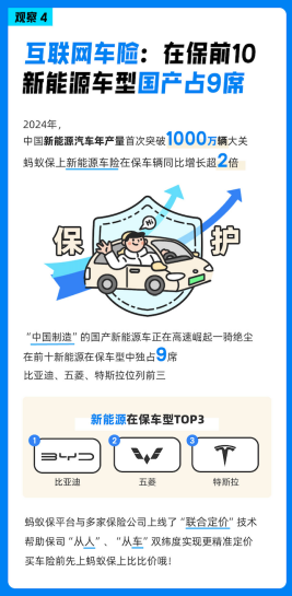 互联网车险:在保前10新能源车型 国产占9席