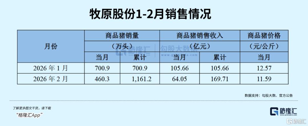 但由于猪价下跌,猪企显示出明显的“量增价减”,销售收入出现普遍下滑,牧原、温氏2月销售收入同比分别下跌23.98%和15.58%。