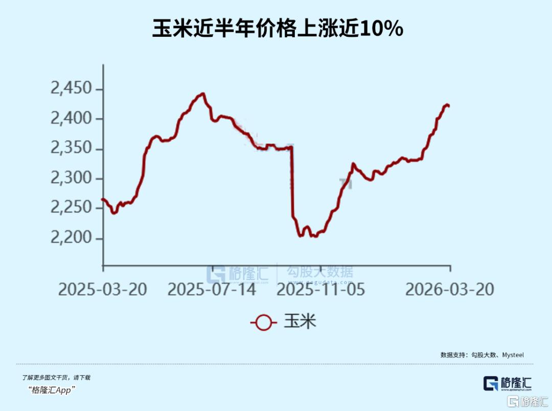 而近一段时间,农产品价格大幅上涨,其中,猪饲料的主原料——玉米近半年价格上涨近10%,豆粕年内价格也涨超10%。