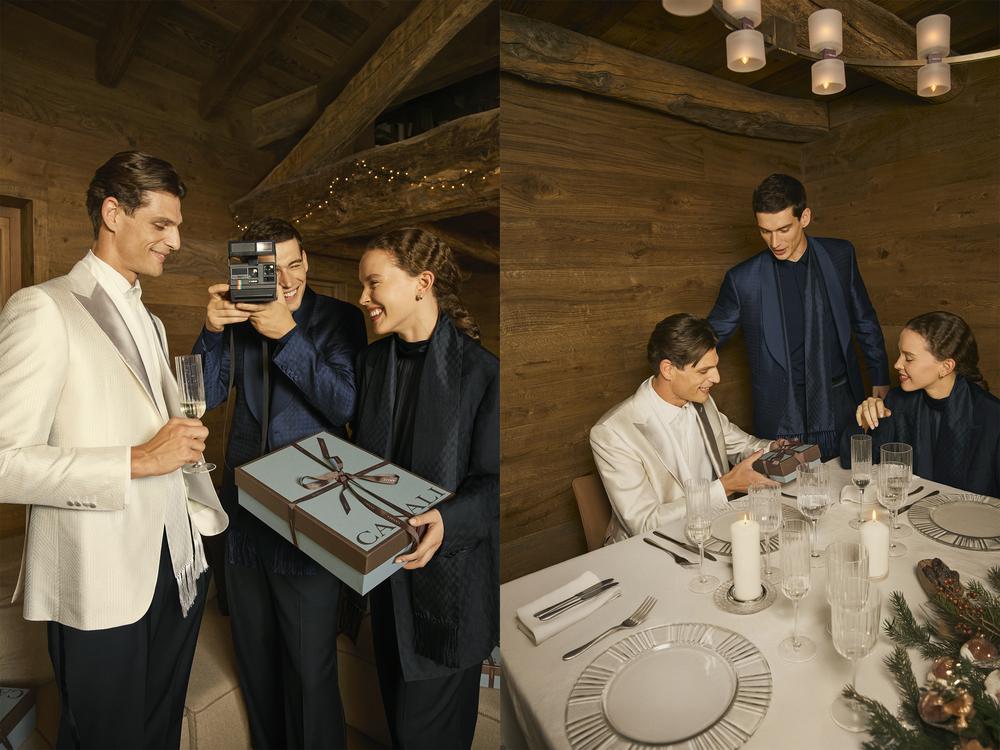 Canali推出假日晚装系列,系列涵盖灰调与海军蓝组合的纯羊绒家居长袍,以及丝巾等配饰,同时亦包括礼服衬衫、丝混纺面料的单排扣与双排扣黑色西装外套,构建适用于多种正式场合的衣橱选择。品牌标志性的“Freccia”箭头图案亦点缀于晚装之中,羊毛真丝西装上衣采用满印处理,便鞋等配饰则通过暗纹细节完成整体搭配。系列色调由靛蓝与飞行员蓝延展至柔白与香槟色系,为晚装造型提供更为多样且清爽的选择。