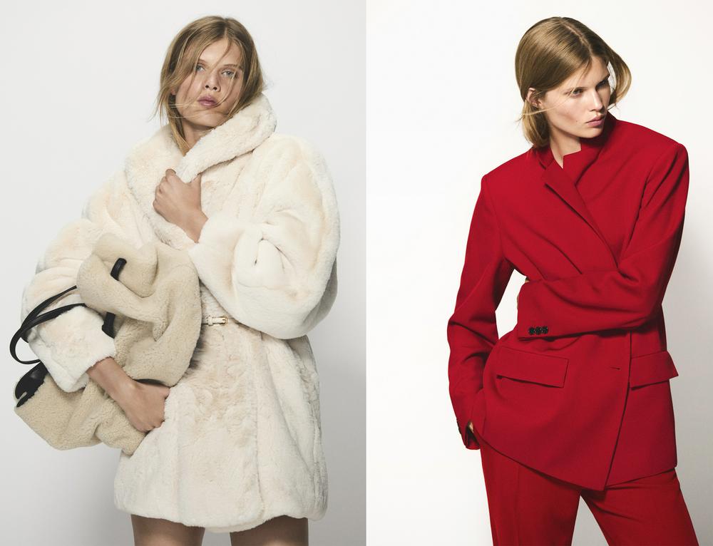 COS推出全新节日系列,以深邃中性色与冬日色调为主,跃现的亮红色调为之注入一抹沉静自信。女装系列围绕立体肩线、精准剪裁与多样化针织单品展开,燕尾服式连衣裙与红色精裁西装借鉴上世纪八十年代较为宽松的廓形比例,仿羊羔绒大衣则通过材质本身强化保暖与体量感。男装系列借叠穿美学融合实用与雅致,梭织衬衫衬于多尼戈尔针织Polo衫内,搭配经典正装,共同构筑从容而自在的冬日衣橱。配饰部分延续同一设计思路,将羊羔绒材质运用于帽饰、连指手套与雕塑感手袋之中,为整体造型增添层次感。