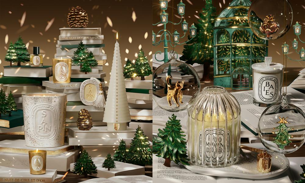 Diptyque冬日限量系列与童话故事完美结合,系列作品饰以奇幻插画及金色图案。限量版超大号冷杉香氛蜡烛由法国南部一家技艺精湛的制蜡工坊精心手工打造,搭配同样饰以金色斑点的釉面陶瓷烛罐。冷杉清新细腻的木质气息,仿佛家中挂满花环的圣诞树,即刻唤起浓郁热烈的节日记忆。冬日限量版璀璨鎏金竖纹玻璃烛罩搭配全新设计的椭圆托盘底座,在陶瓷肌理间流淌着洒金的璀璨光芒,可用于放置火柴与灭烛罩,以及随身相伴的精美首饰。