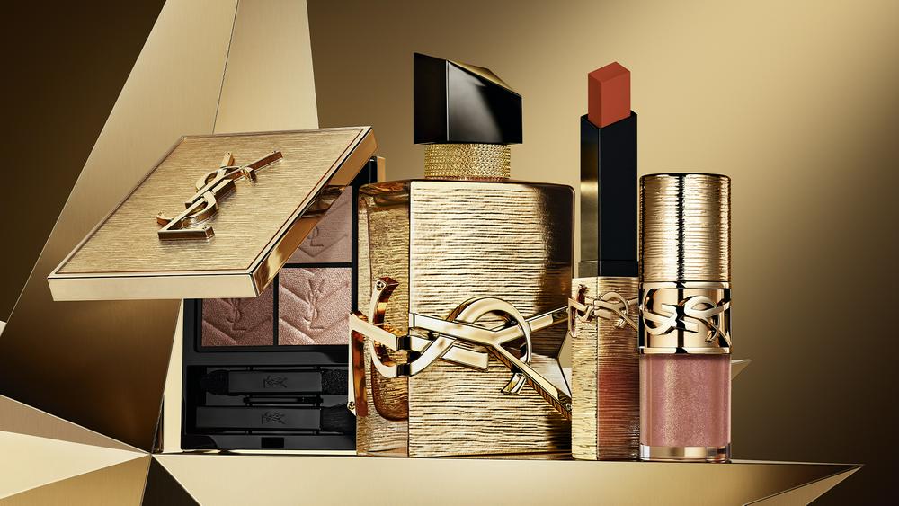 YSL推出奢金节日限定倒计时礼盒,以鎏金拉丝工艺与立体浮雕呈现奢华贵气的氛围,搭配高定旋转开盒设计,集结多款限量彩妆与香氛,帮助打造完整的妆容方案。礼盒内含“奢金”节日限定小金条,搭配特别定制的金色外壳,色号1936呈现琥珀柑茶色调;“奢金”节日限定四色眼影025色号以香槟金棕为基底,融入粉紫亮片,适配多种派对场合;自由之水奢金版香氛采用香草调香气,延续品牌经典气质;同时搭配啵啵唇冻05色号与粉气垫B10色号,完善底妆与唇妆选择,提供多维度的节日造型可能。