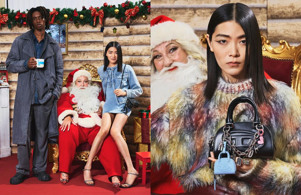 在创意总监Glenn Martens与艺术总监Christopher Simmonds的视觉共创下,Diesel 2025假日系列广告大片以诙谐颠覆的幽默感重塑经典节日家庭合影,彻底打破传统圣诞影像的固有范式。威尔士亲王格纹丹宁系列是Diesel假日系列中的重点单品,系列以绅士剪裁为基础进行解构与重塑,并将这一语言延伸至以丹宁面料打造的女式套装之中,展现品牌一贯的反差与实验精神。另有标志性造型挂饰点缀家居空间,亦可为1DR Dome手袋增添节庆装饰细节,呈现富有玩味的节日氛围。