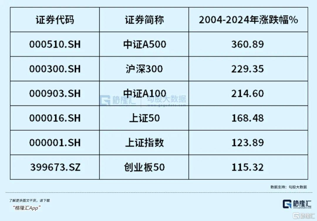 而A500指数,也用“成绩”证明了自身的价值。自2005年1月1日-2024年12月31日,中证A500指数上涨360%,跑赢同期的沪深300(上涨229%)、上证指数(123%)。