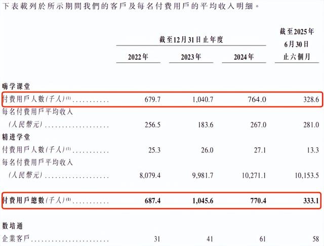 更严峻的是,持续高涨的营销投入并未带来稳定的用户增长。报告期内,公司付费用户总数呈现波动下滑趋势:从2022年的68.74万人增长至2023年的104.56万人后,2024年大幅下滑至77.04万人,2025年上半年进一步降至33.31万人。