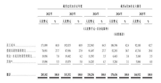 从人员结构看,截至2025年上半年,公司1258名全职员工中,销售及营销人员占比高达80%,达1006人,而讲师及其他教学辅助人员仅133人,占比10.6%,研发人员更是只有57人,占比4.5%。