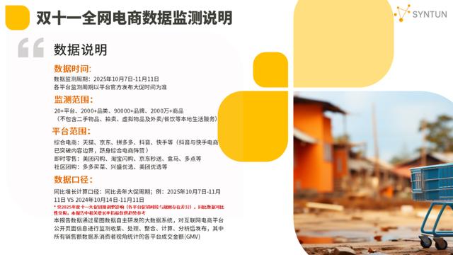 需要注意的是,受2025年双十一大促周期调整影响(各平台促销时段与规则与去年存在差异),同比数据可比性受限,因此本报告中相关增长率指标仅供趋势参考;