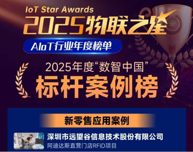 近日,备受行业瞩目的2025“物联之星”中国AIoT行业年度榜单正式揭晓,全球领先的RFID产品与物联网解决方案供应商——深圳市远望谷信息技术股份有限公司(以下简称“远望谷”,股票代码:002161.SZ)凭借卓越的技术创新实力、深厚的行业积淀与标杆化的场景落地能力,一举斩获“2025年度中国AIoT行业创新小巨人企业”、“2025年度中国最有创新力RFID企业”两项重磅企业荣誉,旗下“阿迪达斯直营门店RFID项目”更是成功入选2025年度‘数智中国’标杆案例(新零售应用),以三项重磅荣誉彰显行业领军地位,成为本届榜单中备受关注的标杆企业。