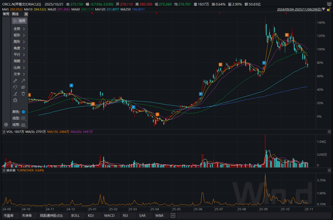 本来近期市场对AI泡沫的争议颇多,Sarah Friar 的发言更是加重了市场对于OpenAI左脚踩右脚的怀疑。此前宣布与OpenAI签订3000亿美元人工智能大单后,美国老牌科技巨头甲骨文日内一度暴涨超40%,创下历史新高345.22美元,而如今基本把那一波涨的市值都给跌完了,而且甲骨文的信用违约掉期(CDS)也在不断提高。这说明市场对OPenAI的订单已经从兴奋转到怀疑,甚至是不相信了。
