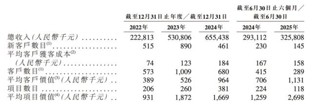 硅基智能将盈利归因于“战略聚焦大型客户,减少对资金流不稳定客户的投入”,这导致平均客户价值从2022年的38万元提升至2025年上半年的113万元。这种销售策略的转变,让硅基智能的平均获客成本大幅提升,2025年上半年获客成本15.8万元,技术达到了2022年的2倍。