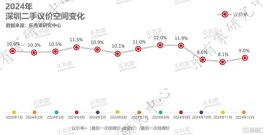 2024年到了年末,议价空间明显缩小,由1月的10.6%下至9%。