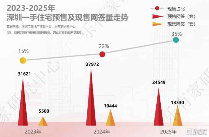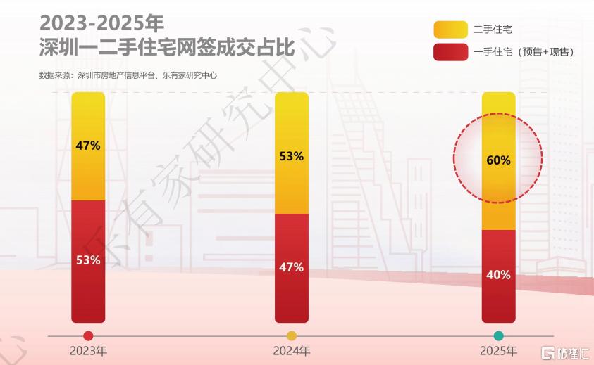 一是2023年—2025年深圳二手住宅的成交占比由47%,上升到60%,同时深圳的新房的限售网签套数逐年增加,由2023年的5500套现售网签,飙涨到2025年的13330套,实现了翻倍。