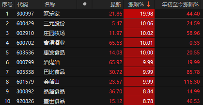 A股消费板块掀起涨停潮,中国中免、舍得酒业、酒鬼酒、会稽山、欢乐家等多股涨停。