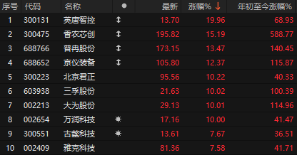 A股存储板块掀起涨停潮,万润科技、英唐智控、三孚股份等多股涨停。
